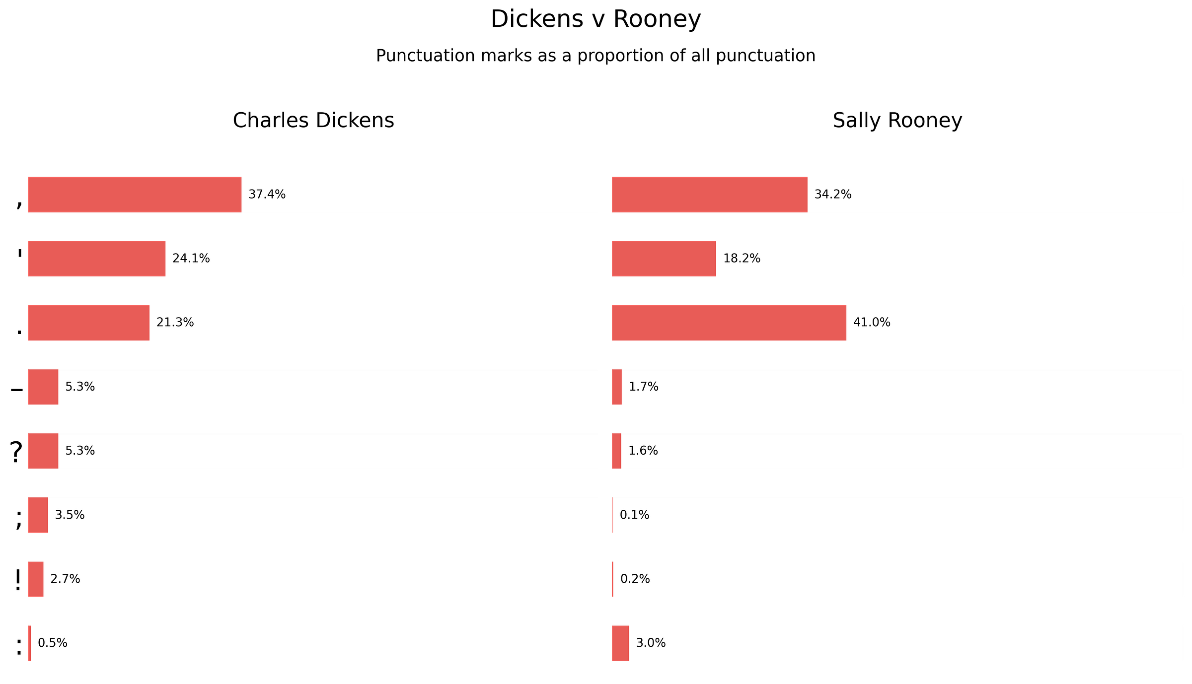 Having said that, writers do seem to write shorter these days; I emphasize seem for a reason that will emerge in a moment. Lee Child’s Jack Reacher novels average, as one study shows, around eight words per sentence; his genre forebear John le Carré clocks in at double that. Likewise, Sally Rooney uses twice as many periods as Dickens, a decent proxy for sentence length, and treats semicolons like used Kleenex.
