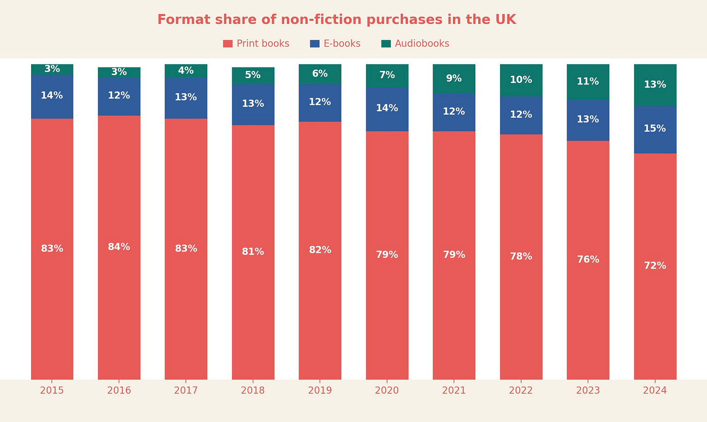 A lot of non-fiction is outdated within a decade - business/economics, technology, science, self-help, even history can become outdated if new historical information is uncovered. So it makes sense why more non-fiction is read in e-format - it is usually cheaper in e-format and a lot more portable - non-fiction can be very bulky in physical format.